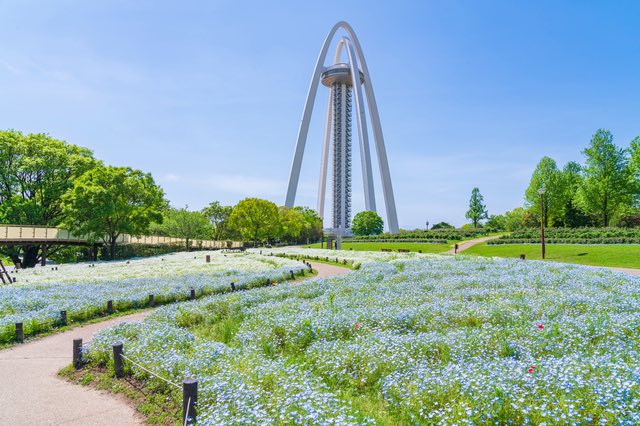 愛知県一宮市の国営木曽三川公園のひとつ「138タワーパーク」は、約3万6000株のネモフィラが咲き誇る、SNS映え間違いなしの人気スポット!