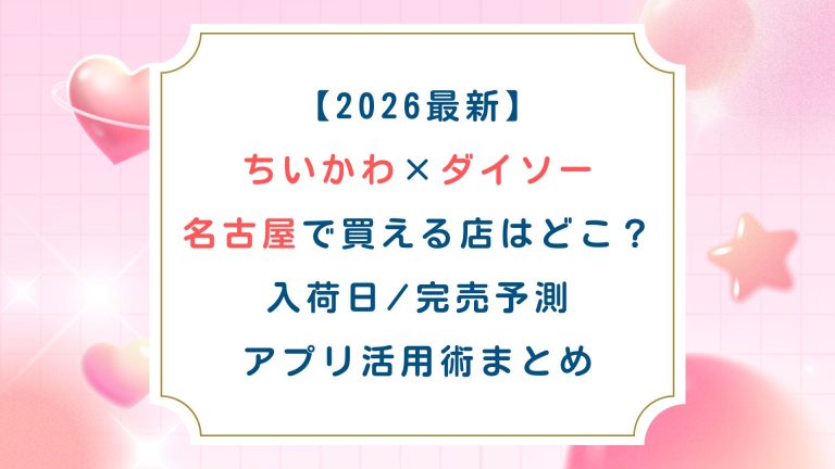 今回は『【2026最新】ちいかわ×ダイソー 名古屋で買える店はどこ?入荷日/完売予測/アプリ活用術まとめ』について紹介しました。