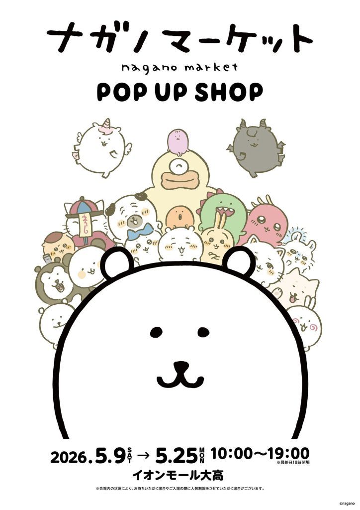 2026年5月、イオンモール大高にて「ちいかわPOP UP STORE」と「ナガノマーケット」の同時開催が決定しました。