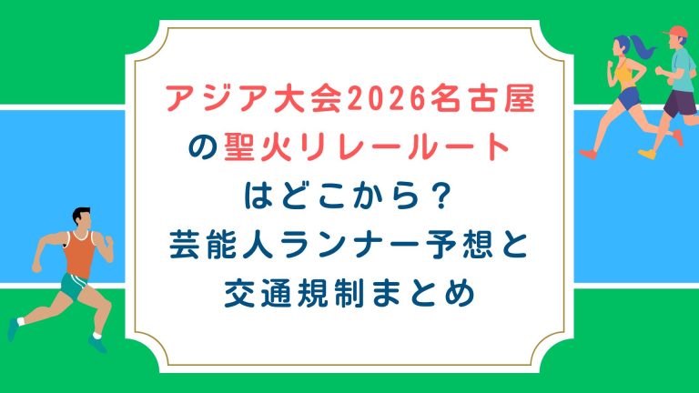 今回は『アジア大会2026名古屋の聖火リレールートはどこから?芸能人ランナー予想と交通規制』について紹介しました。