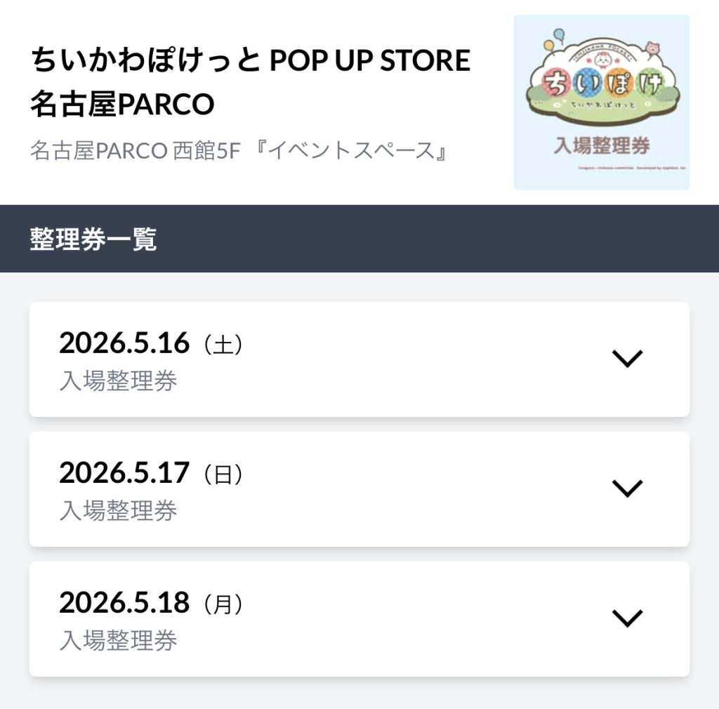 今回は『【ちいぽけPOPUP】名古屋パルコの整理券&混雑予想!フリー入場と本人確認の注意点』について紹介しました。