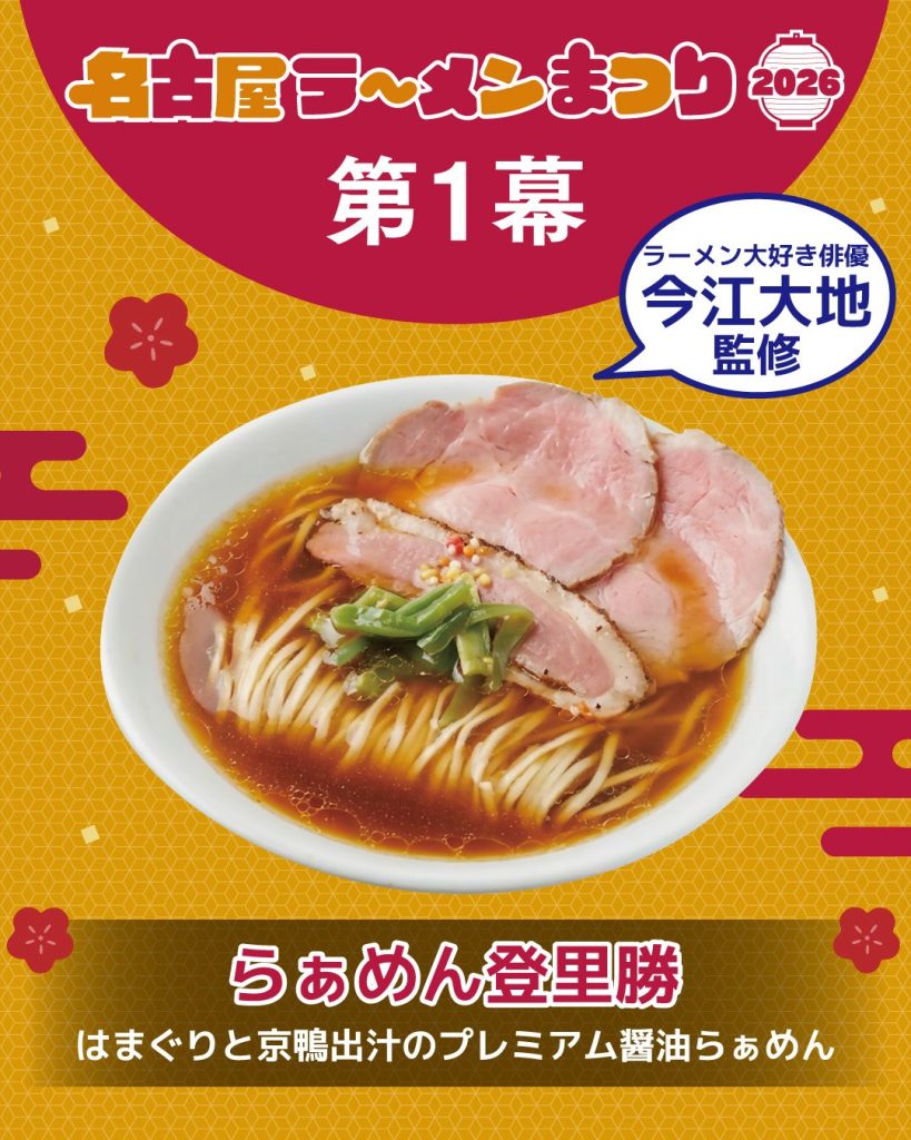 | 今江大地 × らぁめん登里勝 | 三重 | はまぐりと京鴨出汁のプレミアム醤油らぁめん | 醤油 | 俳優・今江大地さんコラボの贅沢出汁 |