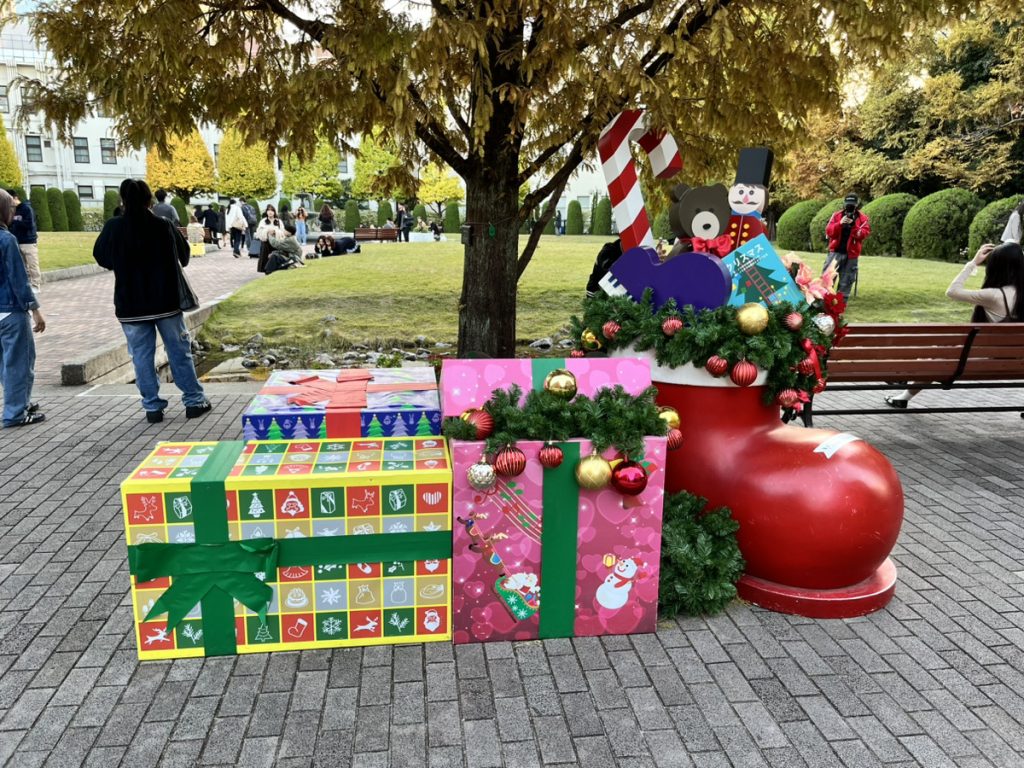 鮮やかなクリスマスの装飾は、昼と夜のイルミネーションとでそれぞれ違う表情が見えるのも楽しいポイント!