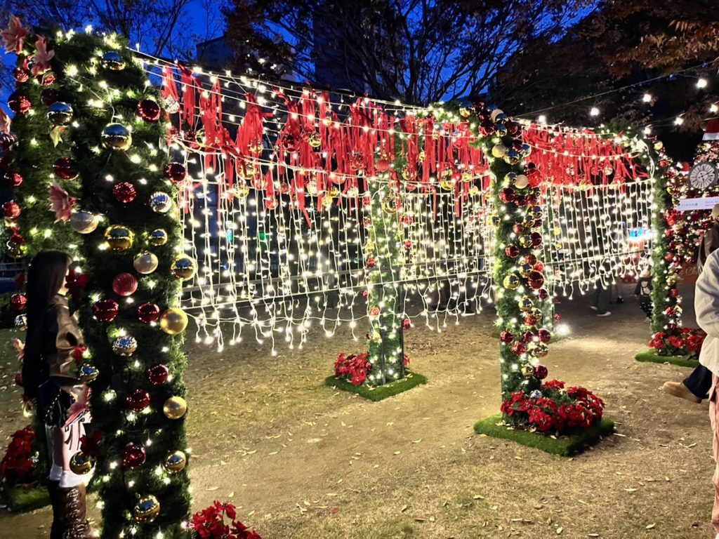高さ14メートルのクリスマスツリー以外にも約4万球のLEDで彩られた幻想的なイルミネーションが広がり、無料なのに豪華な装飾が広い芝生に点在しています。