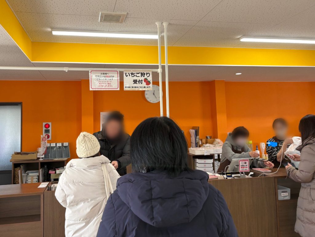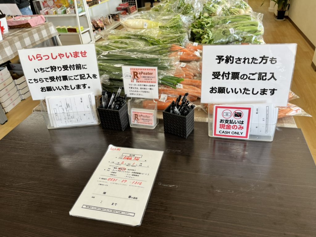 書いたらいちご狩り受付のカウンターに提出して、いちご狩り体験の料金を支払います。