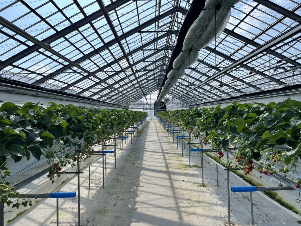 幅にゆとりがあるバリアフリー対応のビニールハウスだったので、ベビーカーも楽々移動できます。
