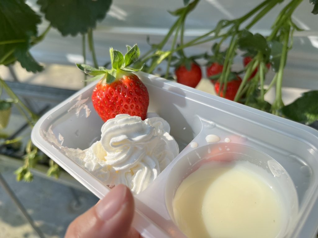 お陽様農園では飲み物、味変トッピング、ロールケーキや大福などの食材系も持ち込みOKのようなので、もっと楽しみたい方はあれこれ持っていくとより楽しそう。