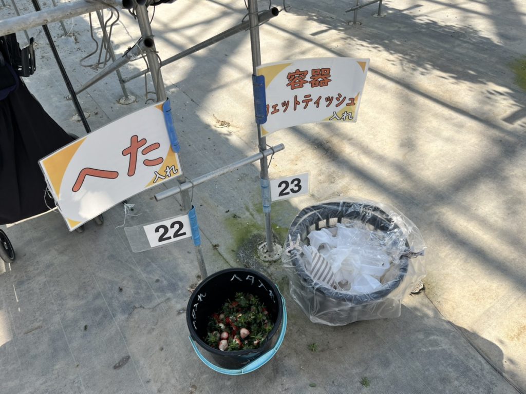 ただ、長いいちごの列の入口付近に1箇所あるだけなので、ゴミ袋を持ち歩いて最後にまとめてヘタなどを捨てるのがいいと思います。