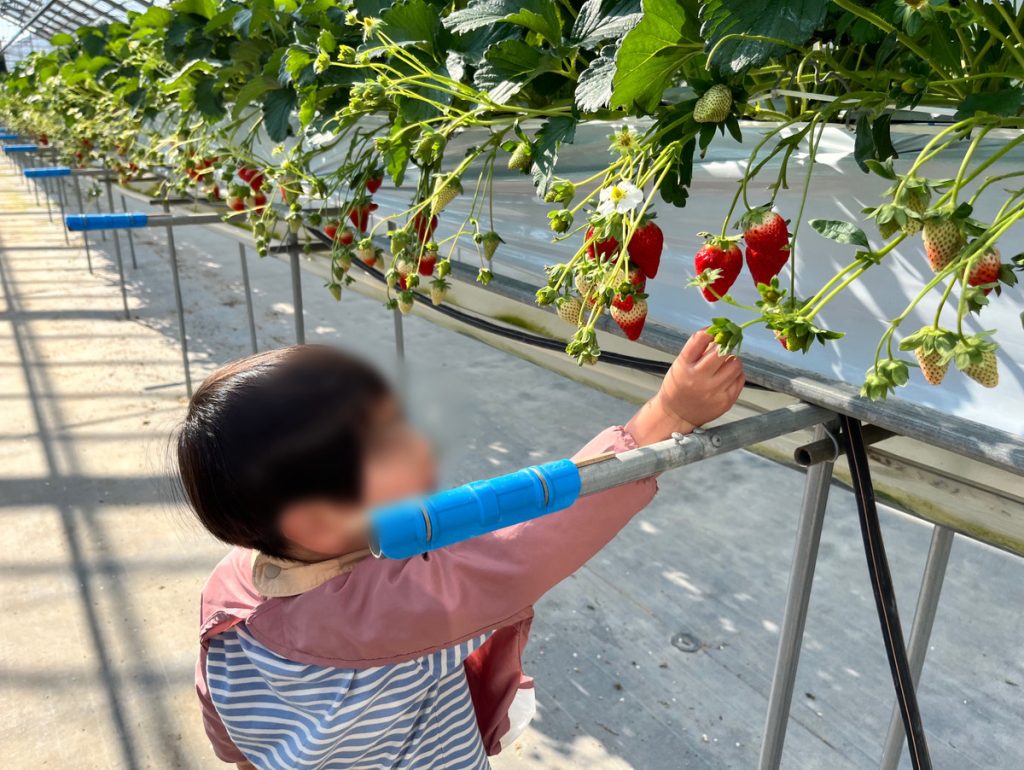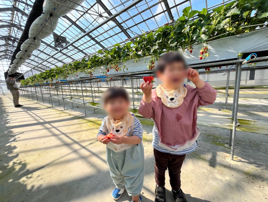 そこで今回は、「お陽様農園」でのいちご狩りの当日の流れや1歳・3歳のリアルな反応、当日役立った持ち物など、パパママ目線で詳しく写真多めにレポートしていきます!