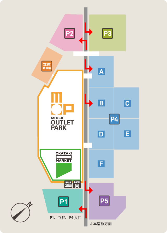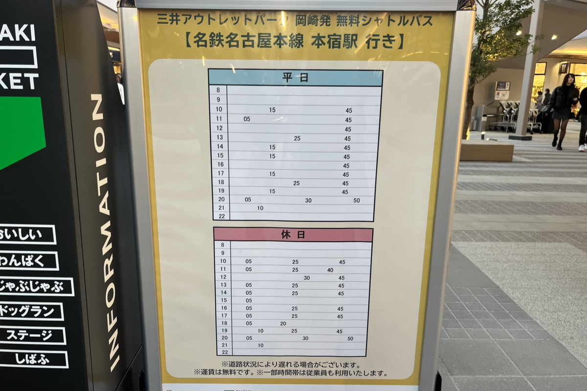 本宿駅からアウトレット行き無料シャトルバス利用(約7分~10分)