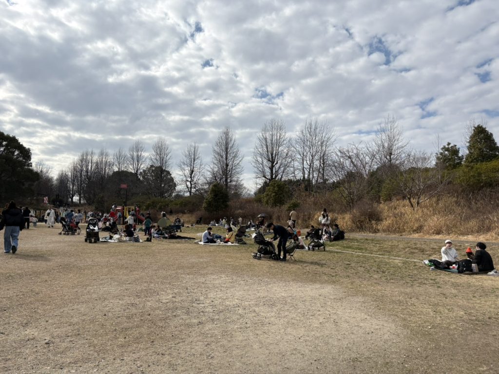 メルヘン広場付近は遊具のそばが開けているので、日差しが強くない時期ならどこでもシートを広げてピクニックできます。